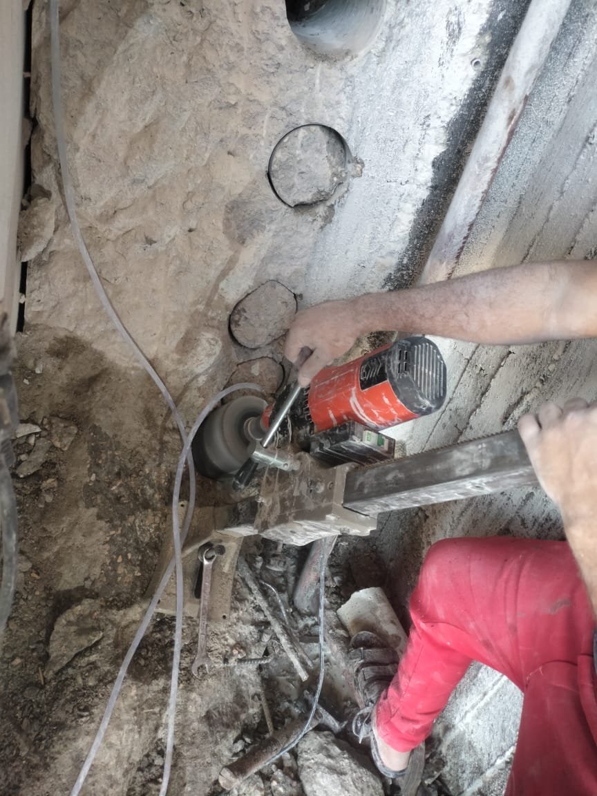 Creating circular openings in various diameters for pipes, electrical systems, and HVAC, using diamond core drilling.